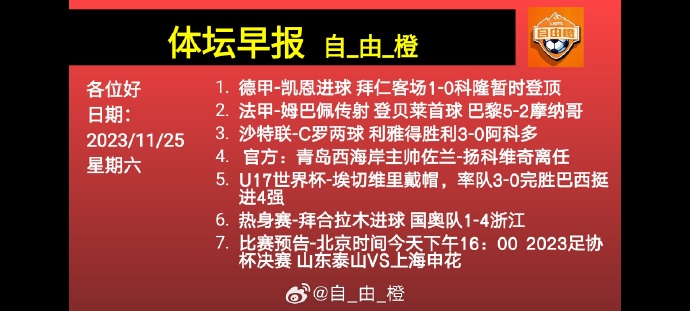 🌐《自由橙足球早报》11.25 周六 泰山队 加油