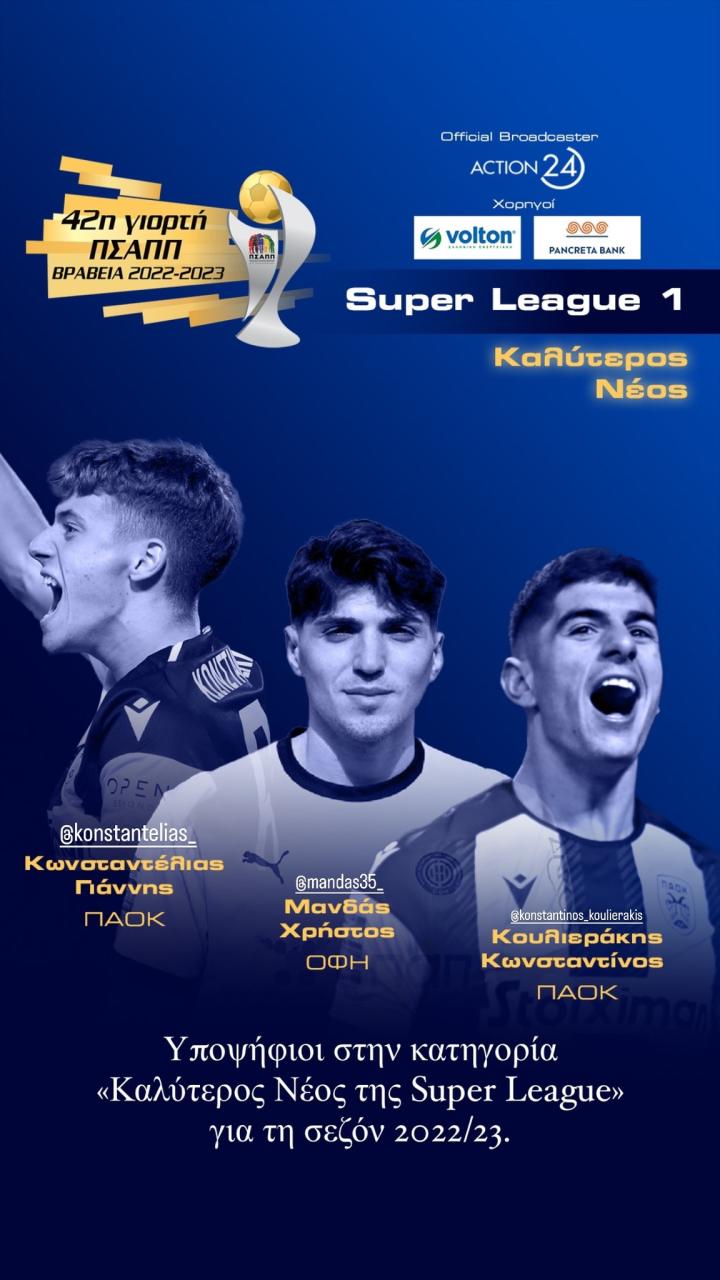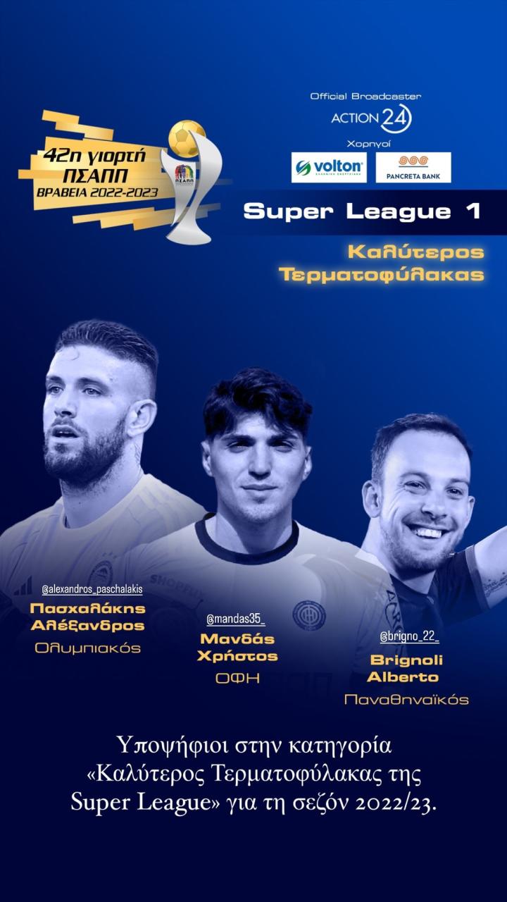 飞翔的蓝鹰在希腊球员协会举办的第42届希腊联赛最佳球员评选中,上赛季效力OFI克里特俱乐部的拉齐奥门将曼达斯成为了2022/23赛季最佳新秀与最佳门将两个奖项的最后三位候选人之一。