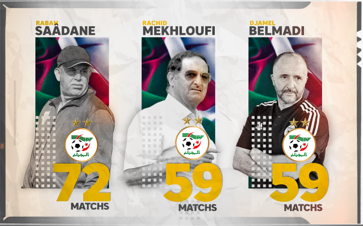 与此同时,这场比赛还是贝尔马迪成为阿尔及利亚国家队主教练率队征战的第59场比赛。他追平了传奇主帅拉希德·梅赫洛菲(Rachid Mekhloufi),成为阿尔及利亚带队出战场数并列第二多的主帅,仅次于拉巴·萨达内(Rabah Saadane)的72场。得益于创造了非洲球队的最长不败纪录(连续35场不败),贝尔马迪的带队胜率高达67.8%(40胜14平5负)。
