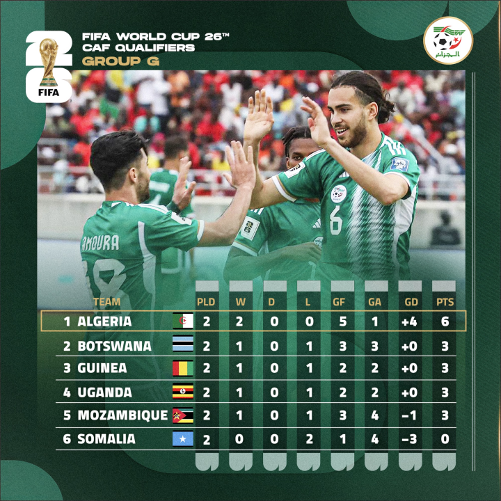 北京时间11月19日晚,2026世界杯非洲区预选赛小组赛第2轮率先开球的一场比赛,是莫桑比克对阵阿尔及利亚。最终,阿尔及利亚凭借沙伊比和泽鲁基的两粒进球,以2:0取胜,成为G组唯一一支前两战全胜的球队。