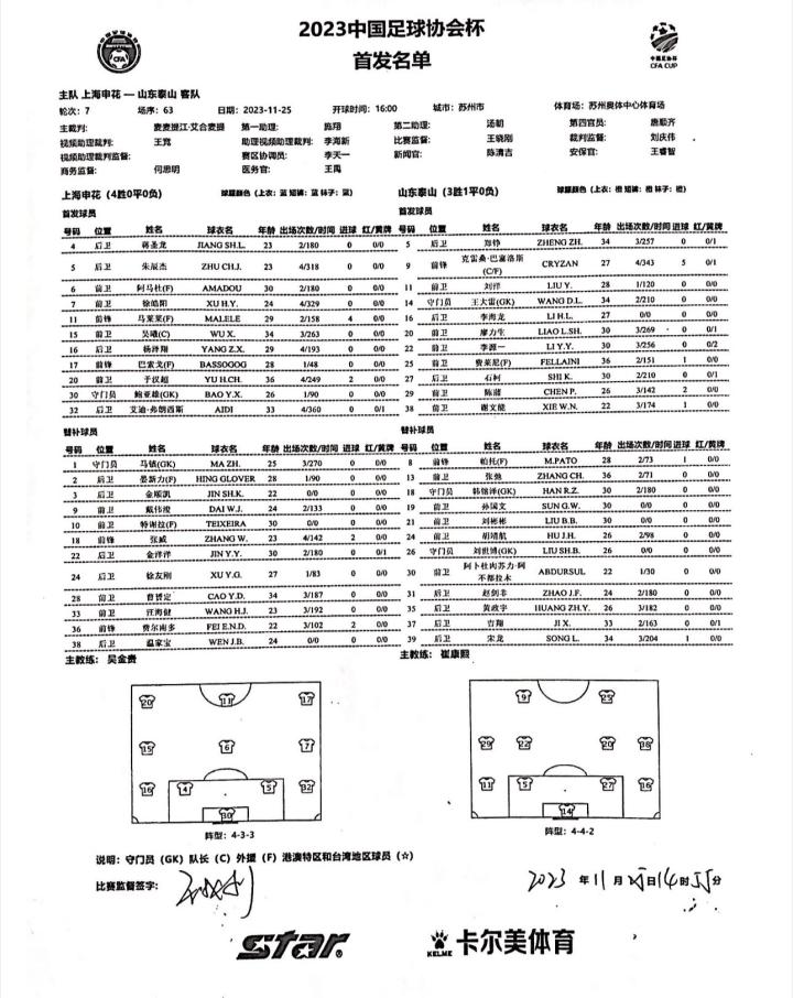 #启程2023##中国足协杯#2023中国足协杯...上海申花足球俱乐部 @懂球帝2023-11-25 15:04#启程2023##中国足协杯# 2023中国足协杯决赛 上海申花vs山东泰山 首发名单展开更多