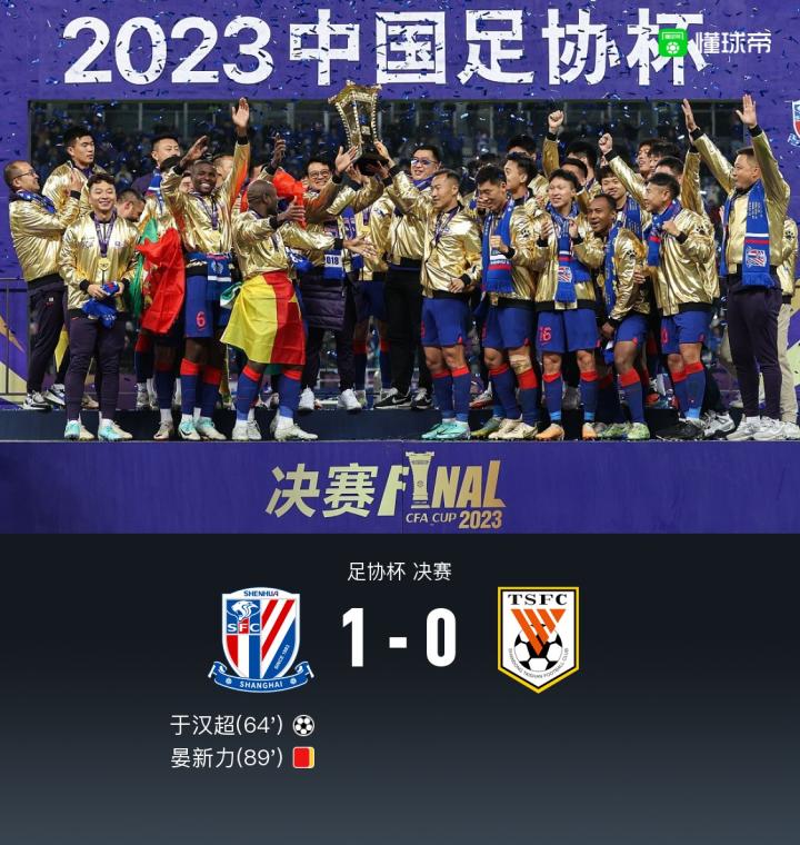 申花1-0山东斩获队史第四个足协杯冠军,于汉超一剑封喉
