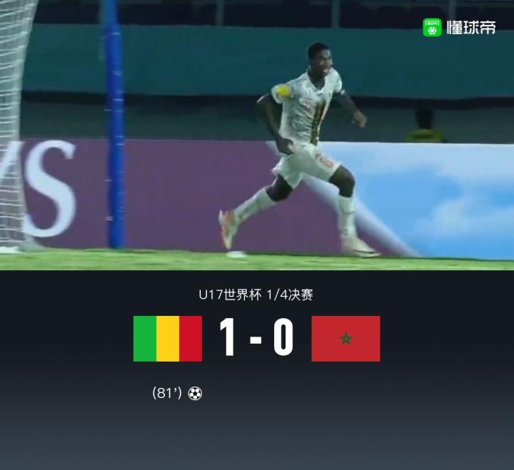 北京时间11月25日U17世界杯 1/4决赛 ,马里U17对阵摩洛哥U17。下半场迪亚拉补射打破僵局。最终马里1-0战胜摩洛哥进4强战法国。