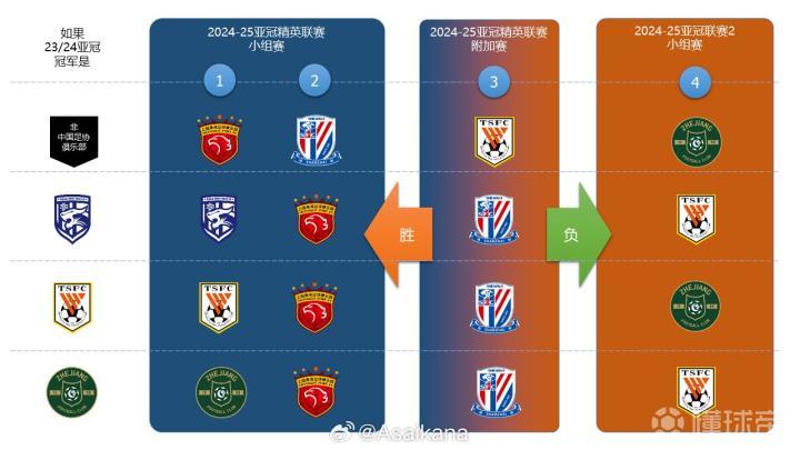 根据朱艺的表述,参加2024-25亚冠精英联赛附加赛的球队,在图中若赢球就“向左”,输球“向右”,所以如果本赛季中超队伍夺得亚冠,那么足协杯冠军申花将参加附加赛,而联赛冠军上海海港则是锁定一个正赛名额。