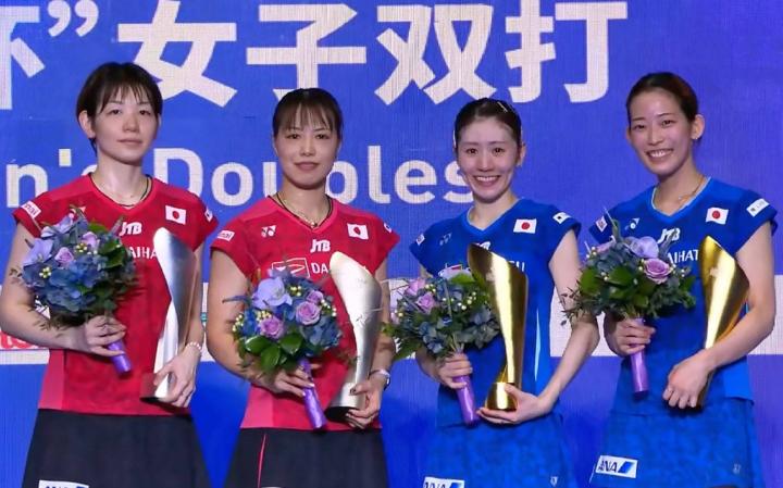 女双决赛在两对日本组合中展开角逐,五号种子松本奈未/志田千阳21-18、21-11战胜四号种子福岛由纪/广田彩花,全场比赛耗时50分钟。值得一提的是油菜花组合已经连续六次不敌队友,难求一胜,松山奈未/志田千阳拿到赛季第三冠。