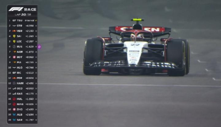 第18圈,随着前方车阵车手纷纷进站,角田裕毅暂时成为场上的领跑车手。