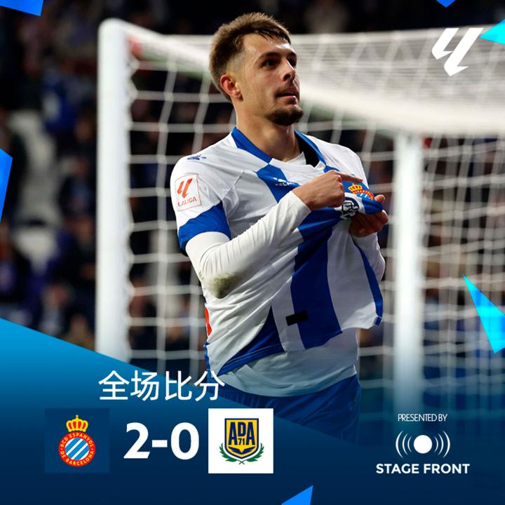 最终全场比赛结束,西班牙人2-0阿尔科孔。
