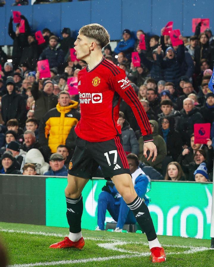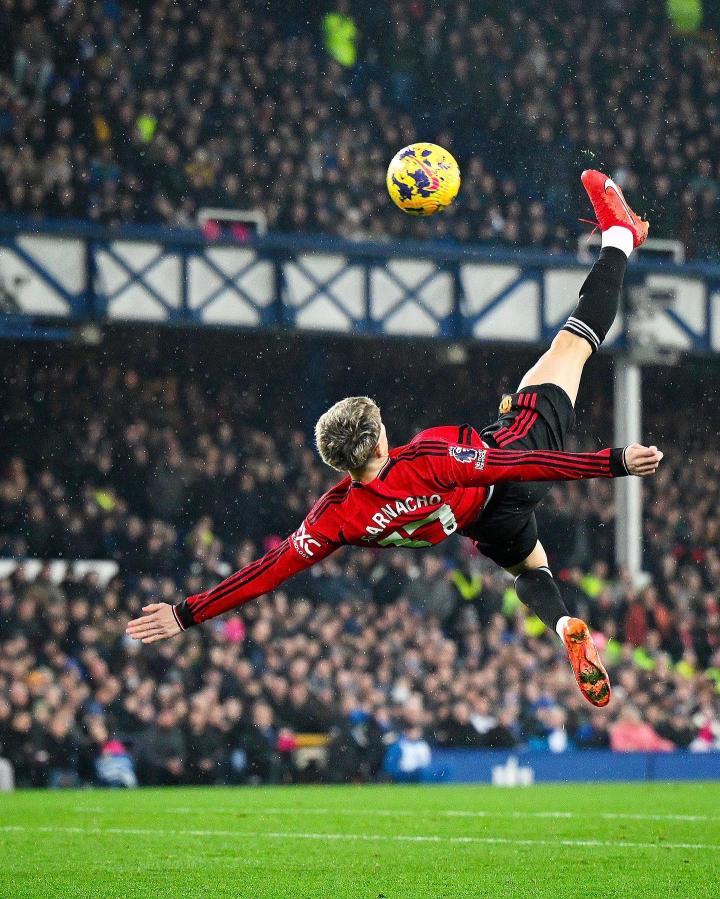 19岁的加纳乔在古迪逊公园球场打进了一记令人瞠目结舌的倒勾。