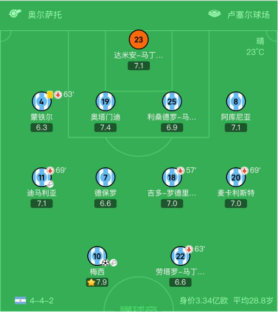 本质上阿根廷还是排出了4-3-3阵型,把边路进攻交给了迪马利亚。斯卡洛尼尚未完成从美洲杯夺冠基底向年轻阵型的转变,本场排兵布阵算是完成了过渡。
