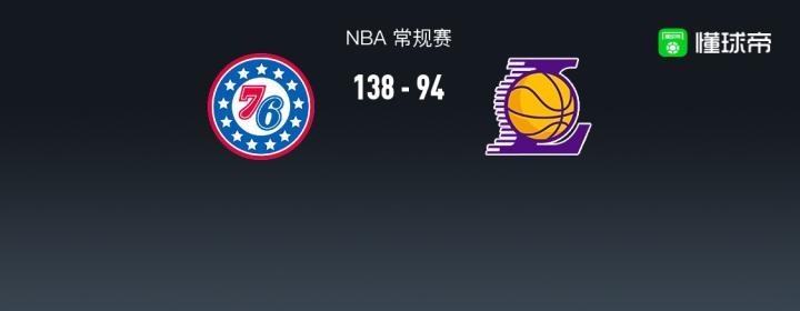 NBA战报:湖人 94-138 76人遭遇44分惨败,马克西31+3+8