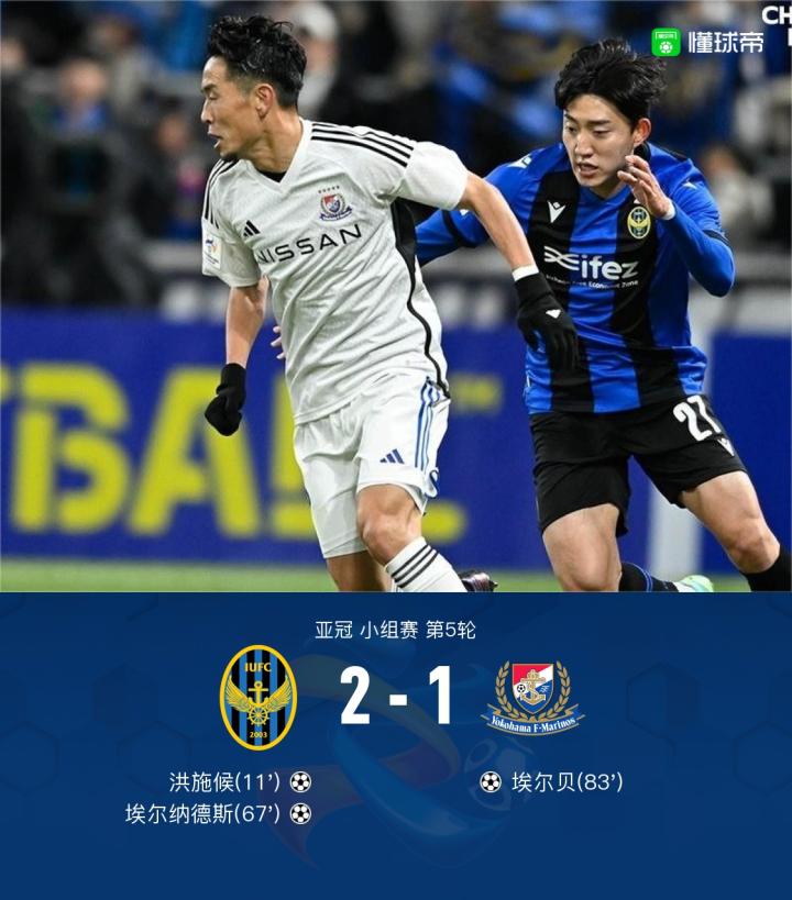 第83分钟,扳回一分,埃尔贝门前头球得分,横滨水手1-2