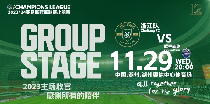 11月29日 20:00 亚冠小组赛 浙江vs武里南联