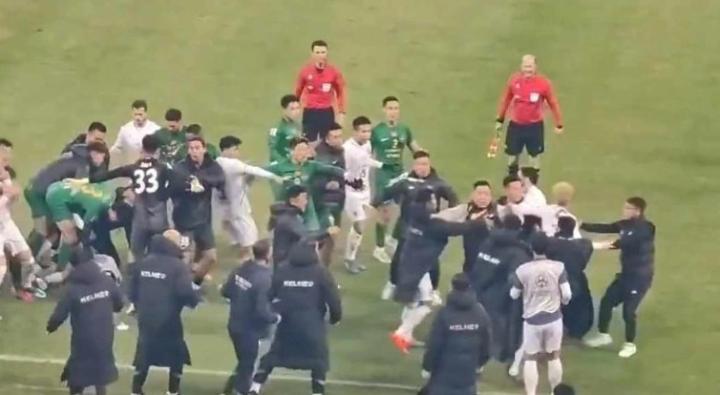 现场球迷也是对武里南联喊出了“loser”的声音并向场内投掷物品,最终厮打了数分钟后双方人员才散去。