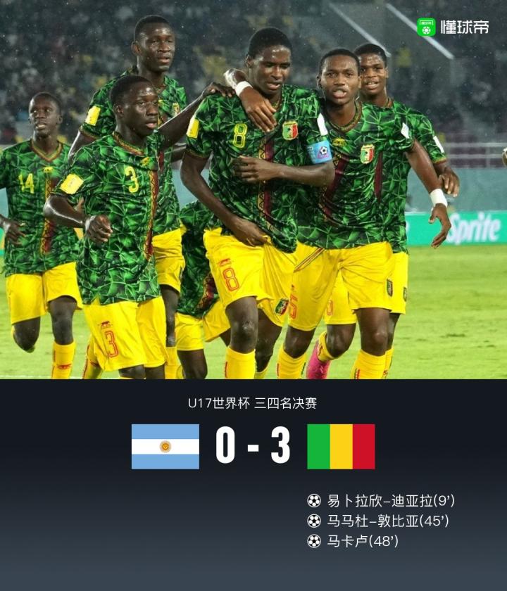 U17世界杯:马里3-0阿根廷获得季军,马卡卢、敦比亚建功