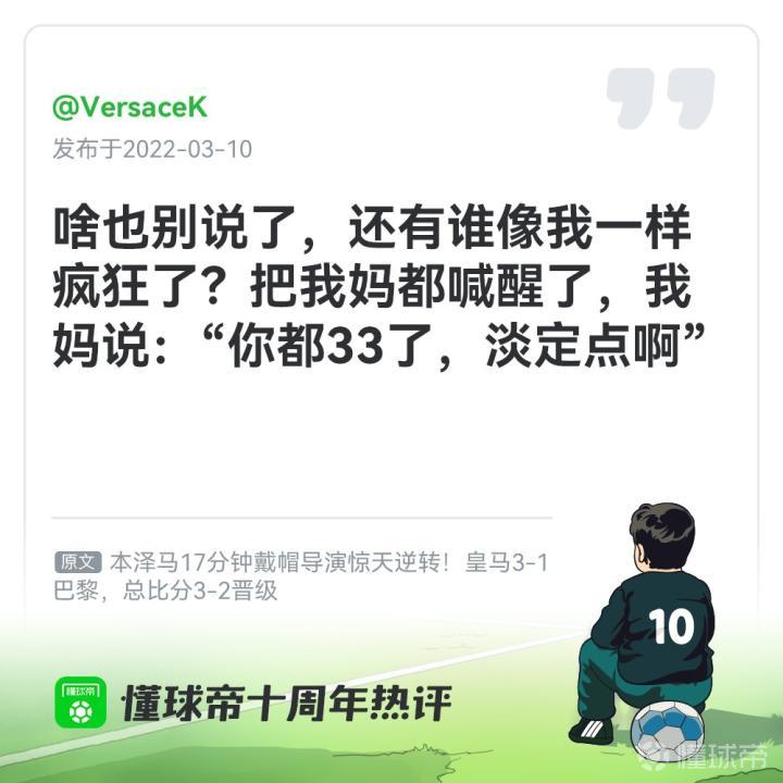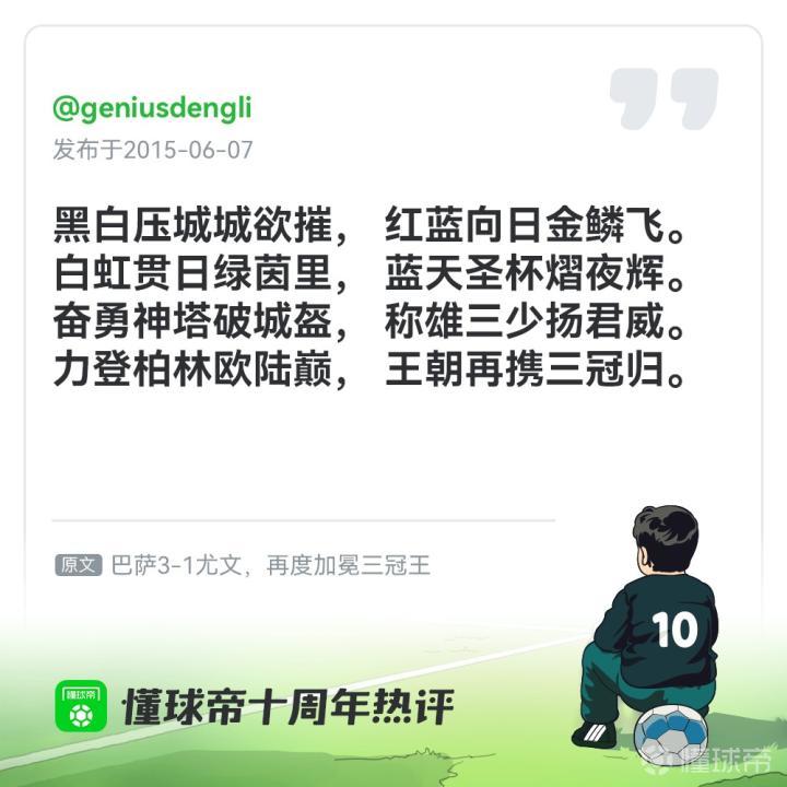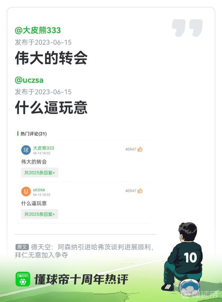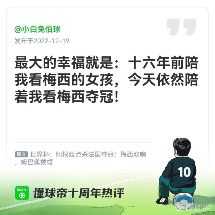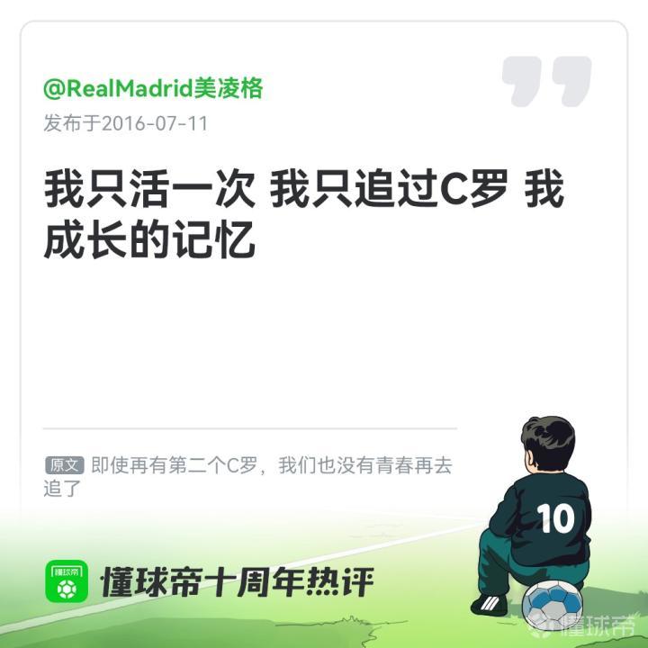 在这其中,你印象最深刻的热评是哪几条呢?欢迎大家在评论区提名自己印象最深刻的评论并携带话题#懂球帝十周年#发布在抖音、微博等其他平台,我们会从话题下选择作品获赞数前三位球迷送上懂球帝十周年T恤