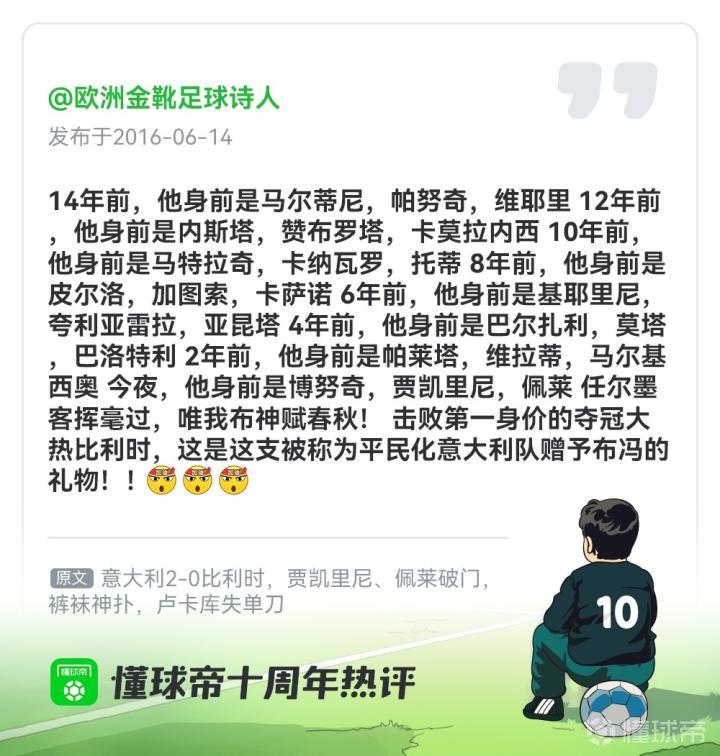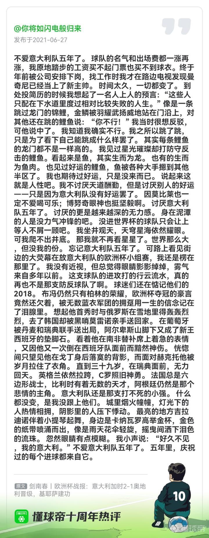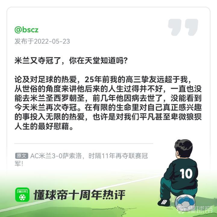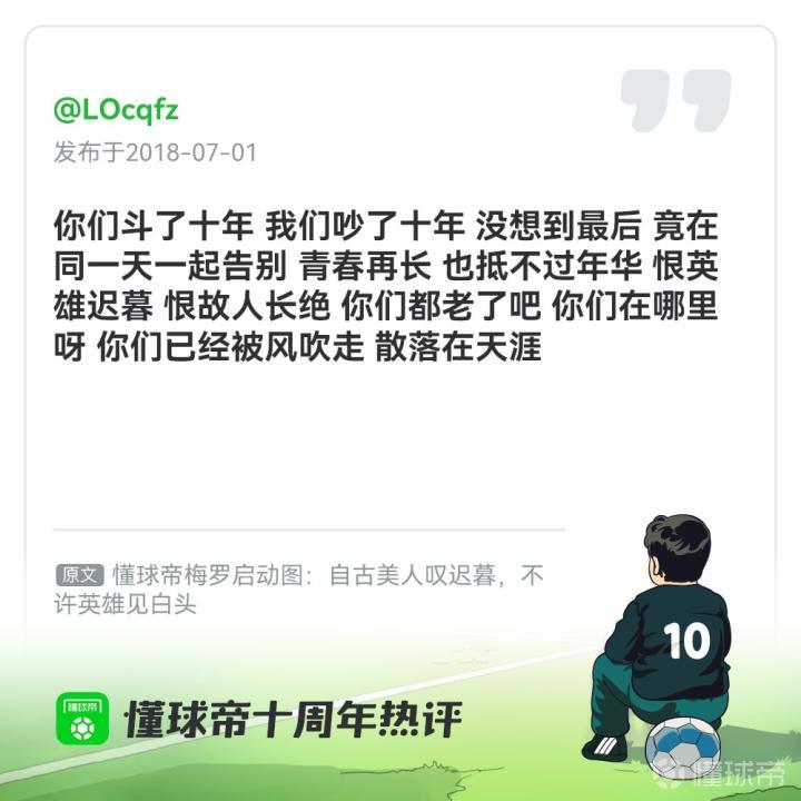懂球帝十周年百大热评!哪条曾是你的青春?
