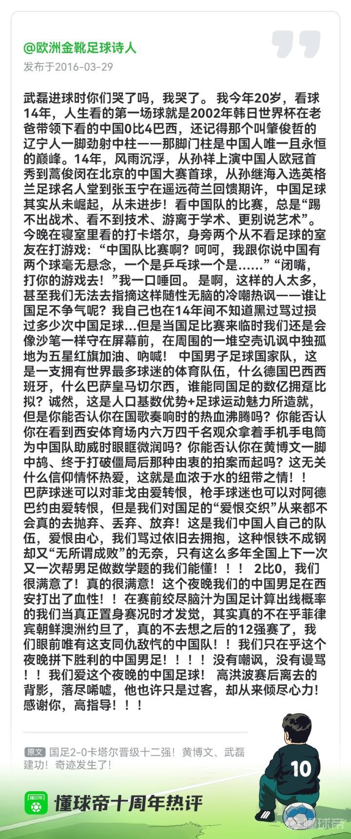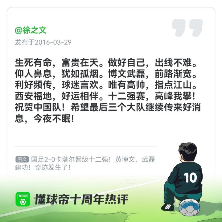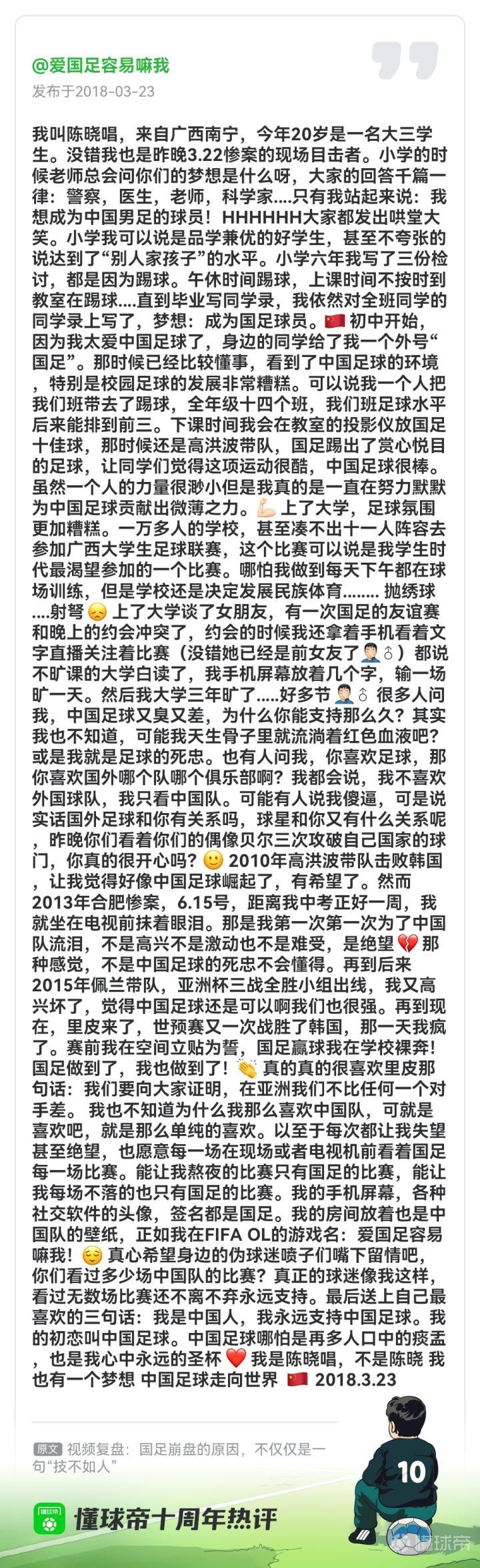 这里我们选出了过去十年,最受中国足球迷欢迎的百大热评。相信大家看完后必会同意,“足球如人生”不是一句大话,足球万岁!