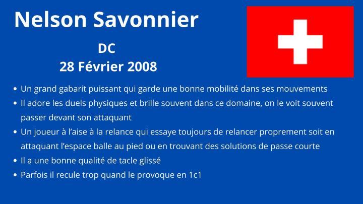 效力于洛桑体育青年队的萨沃尼耶也是瑞士U16国家队的队长,司职中卫的他获得了很多欧洲大俱乐部的关注,比如尤文图斯,AC米兰和罗马。