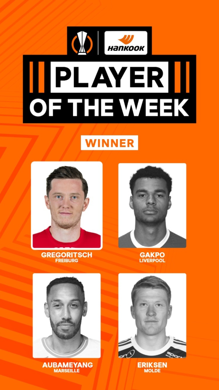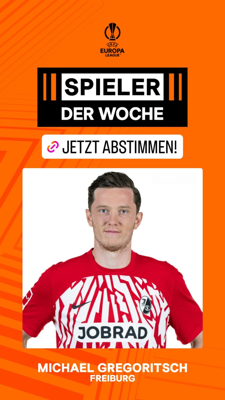 北京时间周五晚,欧足联官方正式公布了本赛季欧联小组赛第5轮的最佳球员——弗赖堡阵中的奥地利人格雷戈里奇成功当选。