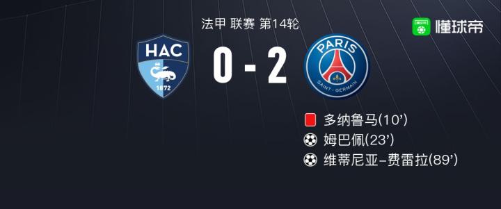 巴黎vs勒阿弗尔球员评分:特纳斯8.1分,多纳鲁马3.0分