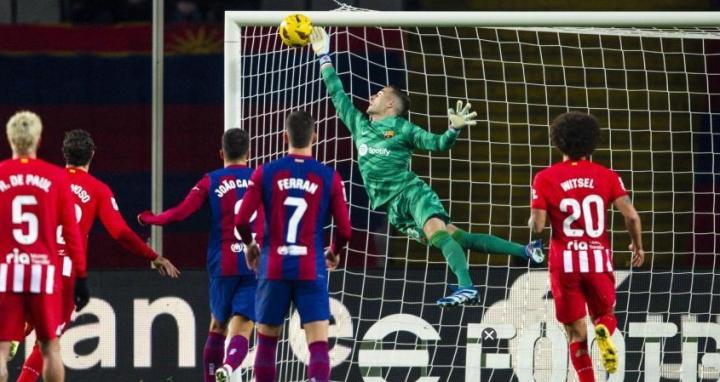 西甲联赛第15轮的比赛当中,巴萨主场1比0力克马竞,巴萨主力门将特尔施特根因伤缺席,替补门将佩尼亚临危受命,在比赛中奉献了一次神奇的扑救。