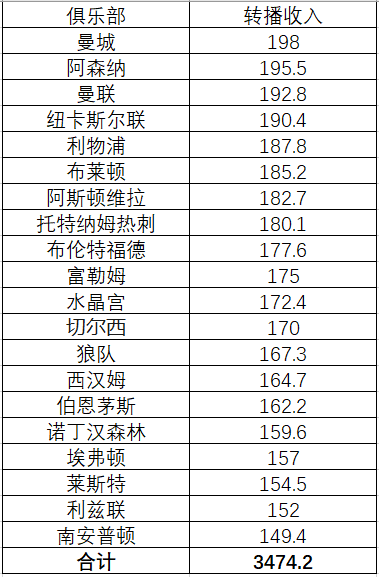 英超已经确认了新的四年国内电视转播协议,总价值增加了4%,英超俱乐部每个赛季的国内电视转播收入是意大利俱乐部的两倍多。