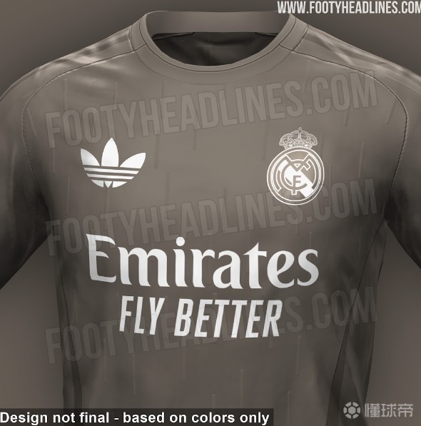 著名足球装备网站FOOTHEADLINES曝光了皇马2024/25赛季的第二客场球衣,配色为木炭棕灰色,阿迪达斯logo将变为经典三叶草徽标。