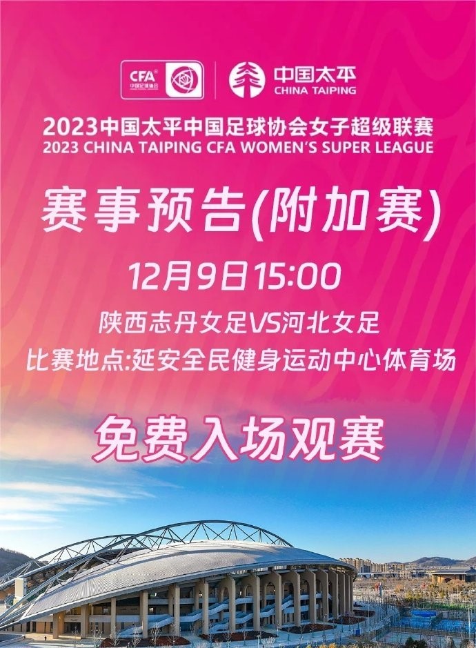 官方:女超升降级附加赛于延安举行,球迷可免费入场观看OS_Shooter @懂球帝2023-12-06 19:15随着本赛季中国女超联赛落下大幕,联赛倒数第二陕西志丹女足将与女甲联赛的第二名河北女足进行升降级附加赛。据官方宣布本场比赛将在延安进行,球迷可以免费入场观赛。比赛将于12月9日15:00在陕西省延安市全民健身运动中心体育场进行,采取一回合定胜负的形式,哪支队伍获胜就将赢得下赛季征战女超联赛的资格。展开更多