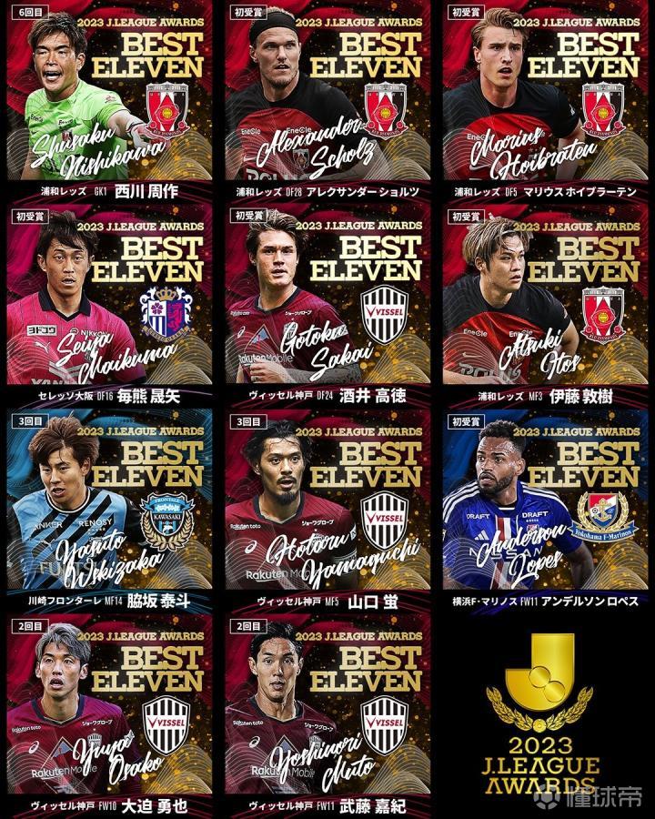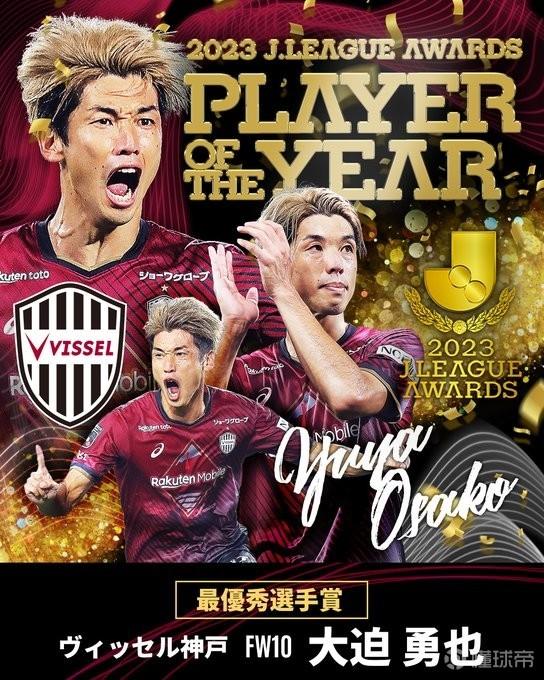 随着本赛季J联赛落下帷幕,各奖项也水落石出。在颁奖仪式上,神户胜利船前锋大迫勇也获得2023J联赛MVP奖项,最佳11人也随之出炉。