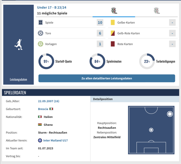 U16和U15的大腿无疑是我上一批介绍的杰齐,场均超过1球的进球效率。另外卡尔博尼家的老三,上一场在U15首发了,之前没有在阵容中看到过他,感觉他应该是之前不到15岁,一直踢的U14,最近应该是凭借着优异表现跳级了,另外可能也标志着杰齐更多的去踢U16了。