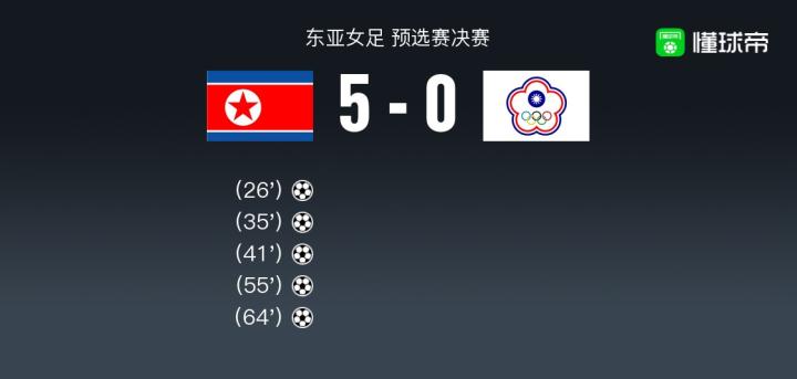 朝鲜女足5-0狂胜中国台北女足取5连胜战报bot @懂球帝2023-12-07 21:51北京时间12月07日东亚女足 预选赛决赛,朝鲜女足主场对阵中国台北女足。朝鲜女足五子登科。最终比分5-0。点击查看本场比赛详细数据>>点击查看东亚女足完整积分榜>>2024 东亚女子足球锦标赛第26分钟,打入一球。第35分钟,打入一球。第41分钟,打入一球。第55分钟,打入一球。第64分钟,打入一球。战报详情更新中…… 技术统计 展开更多