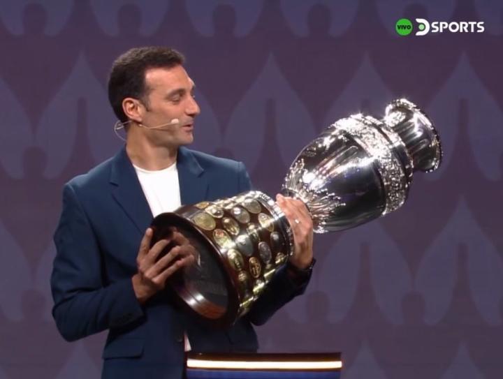 2024年美洲杯分组抽签仪式,上一届美洲杯冠军主帅斯卡洛尼携冠军奖杯出场,他表示美洲杯是一个美好时代的开始,并希望阿根廷队再次夺冠。
