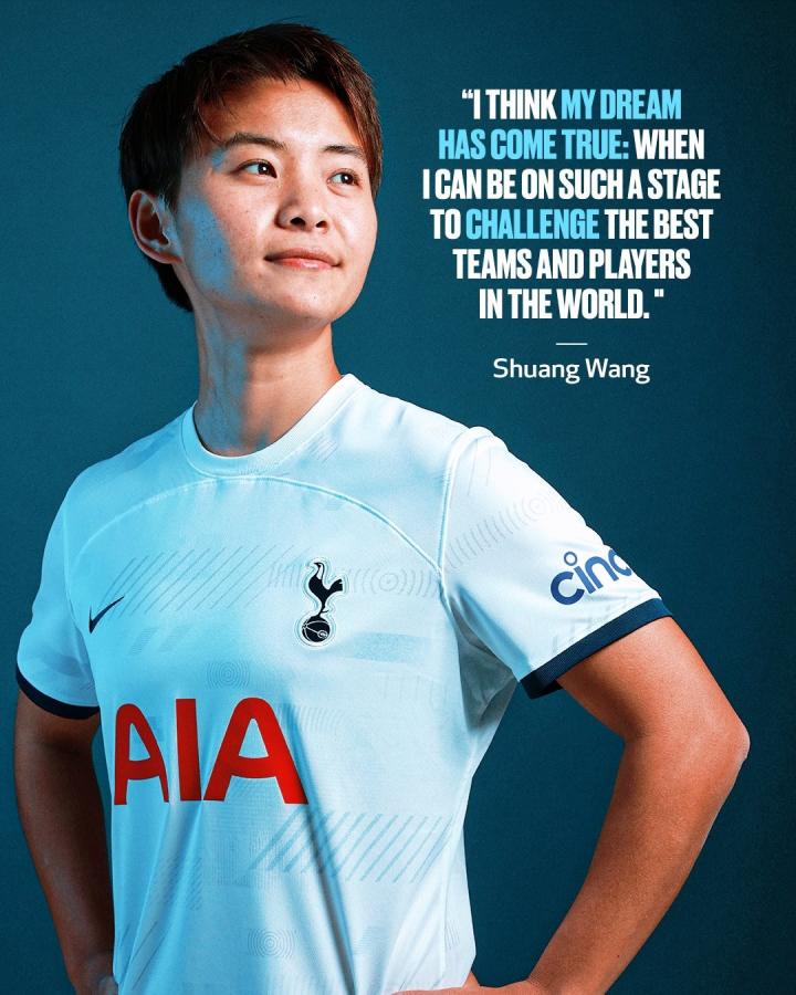在加盟热刺女足后,王霜表示:“我认为我梦想成真了:我可以在这样的舞台上挑战世界上最好的球队和球员了。”