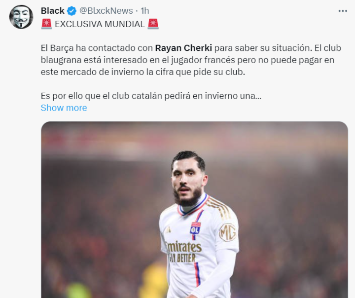 据巴萨推主BlxckNews的报道,巴萨对于“捡漏”里昂攻击手谢尔基的想法一定程度上感兴趣。