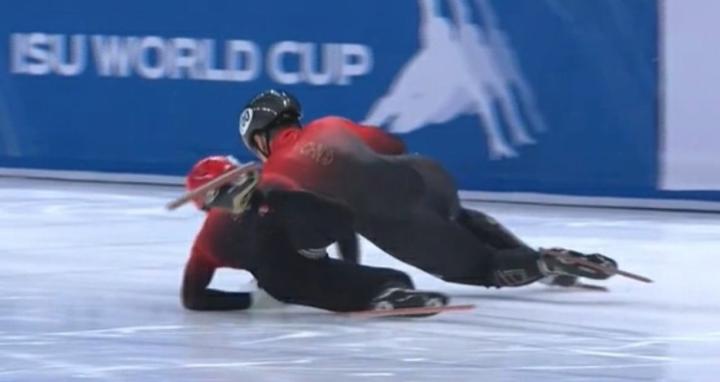 随后进行的男子500米决赛,两位中国选手刘少昂和林孝埈在开始阶段名列前二,但随后两人发生相撞,林孝埈直接摔倒,刘少昂也失去了第一的位置。最终刘少昂收获第四名,林孝埈被判犯规。