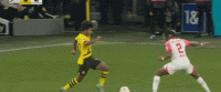 第45+6分钟,布兰特传中,聚勒后点推射扳平,多特1-1莱比锡