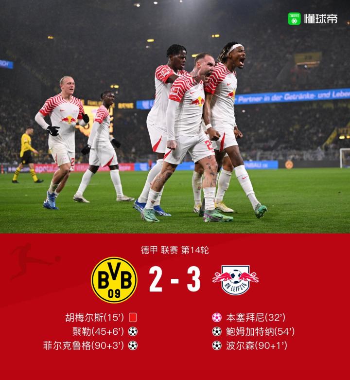 剑南春|十人多特2-3莱比锡,胡梅尔斯直红,本塞拜尼乌龙