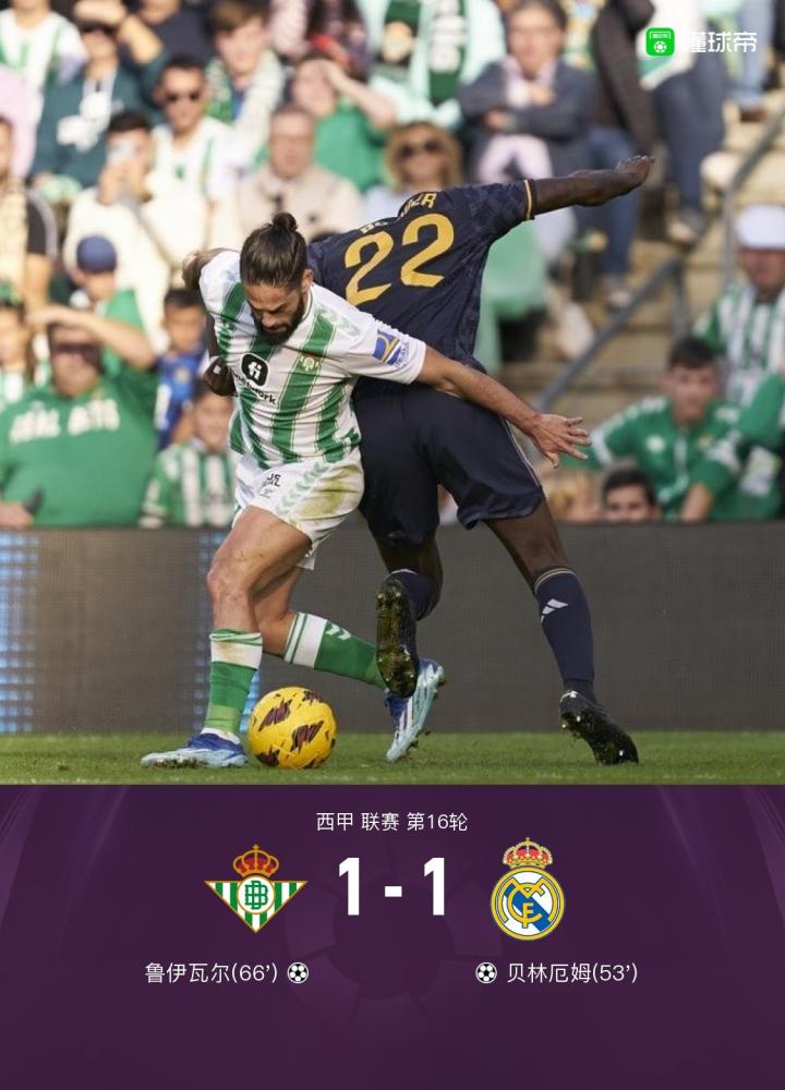 【剑南春|皇马客场1-1贝蒂斯,贝林厄姆破门,鲁伊瓦尔世界波】