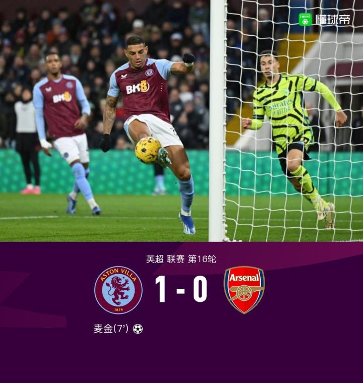 【剑南春|阿森纳0-1维拉丢榜首,哈弗茨绝平被吹,麦金制胜】