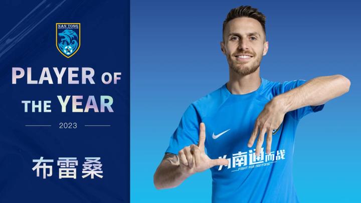 赛季发挥稳定,南通支云官方:布雷桑当选赛季队内最佳球员