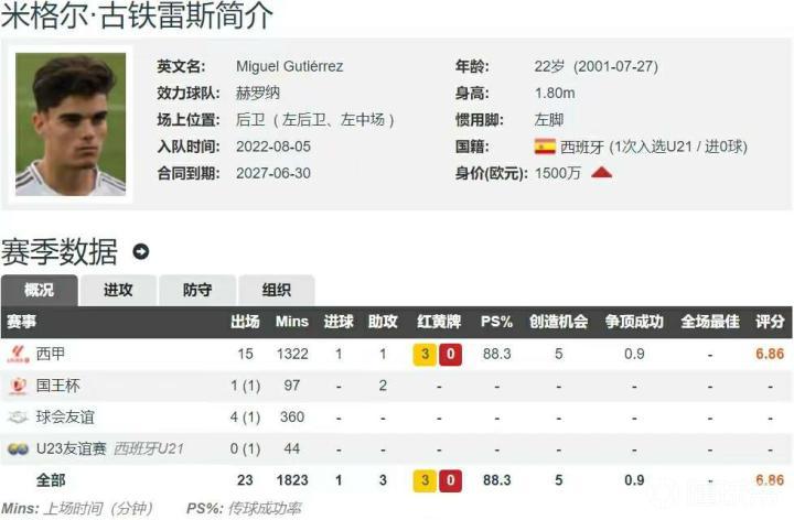 皇马左后卫补强二选一:签回古特雷斯or高薪强挖戴维斯 皇马目前的阵容中,由于费兰-门迪太脆,伤病不断,导致无法稳定出场,而另一位左后卫费兰-加西亚已经逐步被弃用,因此皇马补强阵容,左后卫位置是首要选择。 西甲第16轮,赫罗纳客场4-2击败巴萨,以2分的优势力压皇马登顶西甲积分榜。在对阵巴萨的比赛中,22岁的西班牙左后卫古铁雷斯打入一球,皇马有回签条款。 据德转数据显示,古铁雷斯出自皇马青训,球员于2022年7月开始升入一线队,但未能站稳脚,球员选择于2022年8月加盟赫罗纳。据悉,去年夏窗,皇马仅以400万欧元的转会费出售古铁雷斯50%的所有权,并加入了800万欧元的回购条款。同时其他球队若想签下古铁雷斯,需要激活4000万欧元解约金,并事先通知皇马。 现年22岁的古铁雷斯,身高1.80米,左脚球员,主打左后卫,也可以踢左中场,目前球员在德转的身价为1500万欧元。古铁雷斯是西甲领头羊赫罗纳的主力左后卫,本赛季出战了15场西甲的比赛,全部首发,贡献1球1助。 皇马在左后卫位置,除了签回古铁雷斯是一个选择之外,另一位选择就是高薪强挖上月被《442》评为现役第一左后卫的阿方索-戴维斯。这位现年23岁的加拿大左后卫目前效力于拜仁,合同至2025年,拜仁忙着续约,但球员想要将年薪从900万欧元涨至1500万欧元。戴维斯身高1.83米,左脚球员,主打左后卫,但能踢左路任何位置。戴维斯本赛季各项赛事已经为拜仁出战了20场比赛,其中19次首发,送出3次助攻,目前球员在德转的身价为7000万欧元。 通过上述介绍,你觉得皇马左后卫的答案是谁?