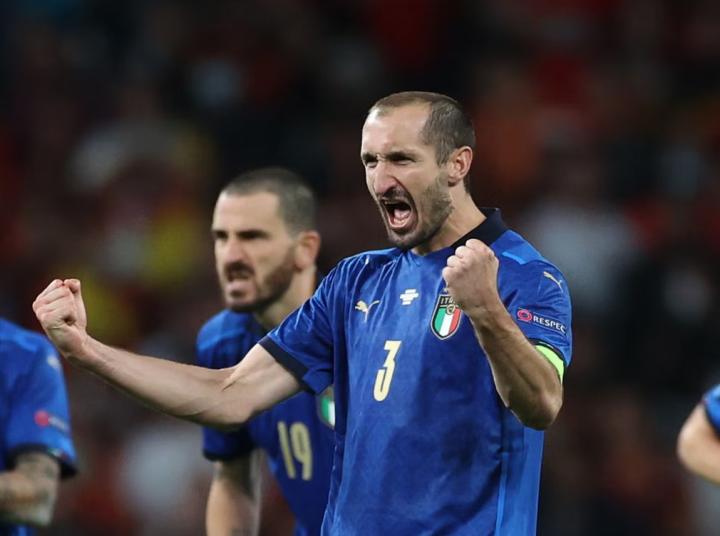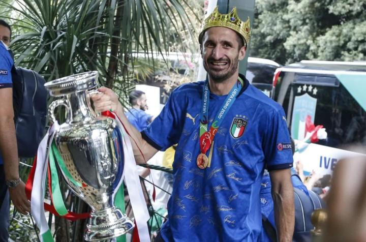 国家队层面,基耶利尼同样是意大利后防不可或缺的一员,自2004至2022年间他共代表意大利队出场117次,曾在2004年代表意大利获得奥运会铜牌,2012年代表意大利获得欧洲杯亚军,并在2021年以队长身份带领球队最终欧洲杯夺冠。