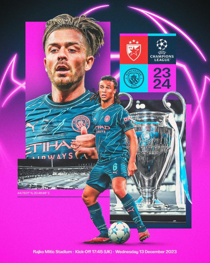欧冠小组赛第六轮,曼城将客战贝尔格莱德红星,赛前,曼城官方发布比赛海报。