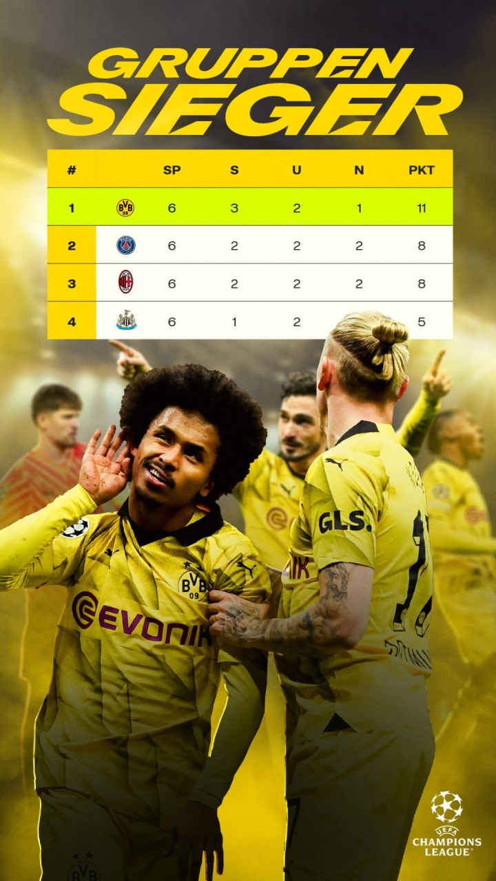 后4场进7球,多特成为取欧冠小组第一进球最少的德国球队