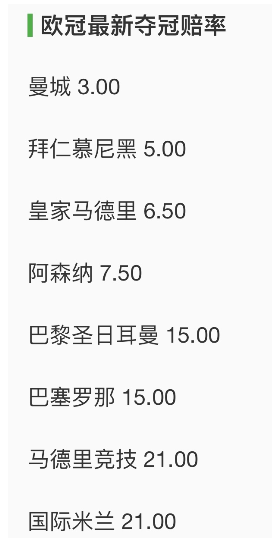 切尔西、皇马和曼城作为过去三届欧冠冠军已经率先获得3个席位。