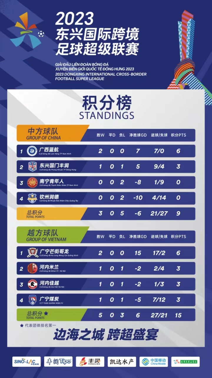 跨超联赛第三轮赛事将在12月16日-17日正式打响,8支中越球队约战国门绿茵场,中方球队总积分目前落后越方战队6分,本轮四场比赛十分关键,越方球队继续凯歌高奏还是中方球队否极泰来,我们拭目以待吧。