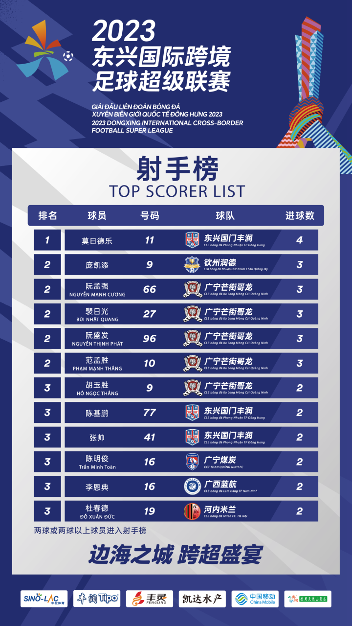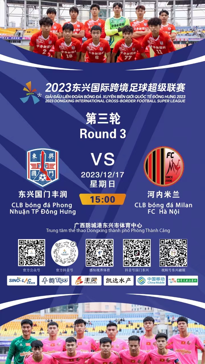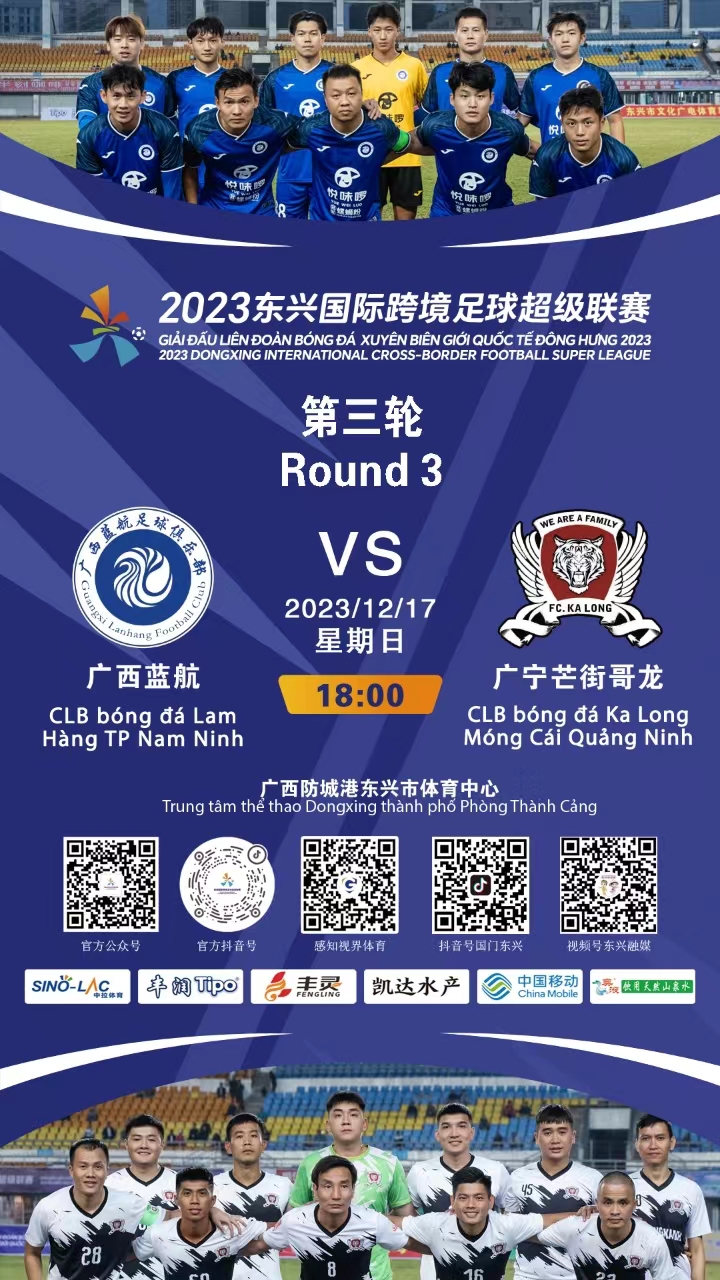 耀武酒肆工作室12月16日-17日,2023东兴国际跨境足球超级联赛(跨超联赛)第三轮开战,8支中越球队约战国门绿茵场。本轮即将迎来跨超的天王山之战:广西蓝航VS广宁芒街哥龙,中越两支实力最强的球队直接对话。另外,中方球队还要在团体总榜上全力追分,挽回颓势。