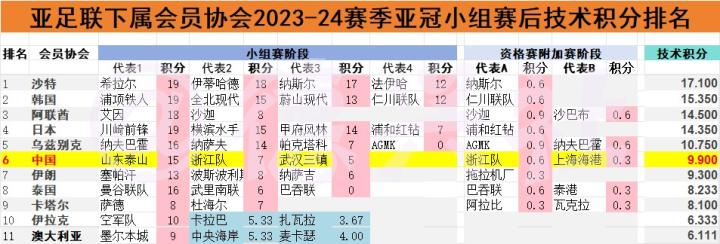 从这个赛季开始,亚足联对亚冠联赛实施全面改革,除了赛制改革外,在技术积分排名方面采用过去八年的成绩、而不是原来只计算过去四年的成绩。在这种情况下,小组赛结束后,中超今年一个赛季所拿到的技术积分目前在亚洲范围内排第六,位于沙特、韩国、阿联酋、日本以及乌兹别克后,甚至压倒了伊朗、卡塔尔、澳大利亚等国,这恐怕也是各方未能想到的。