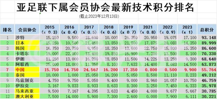 因为今年拿到了9.900个技术积分,所以在截止12月13日的《亚足联下属会员协会技术积分排名》中,中超能够以55.764分排名第七,在整个东亚大区继续排名日、韩之后,应该说也是恢复到了疫情之前的常态。更为重要的是,中超依然压制着泰国。某种程度上,浙江队在今年的小组赛中首轮客场输给武里南联队后,回到主场3比2战胜对手相当关键,毕竟如今的中泰已成为了直接竞争对手,技术积分排名事关未来亚洲精英联赛、亚冠联赛的席位分配事宜。