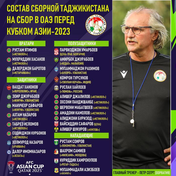 国足对手塔吉克斯坦亚洲杯27人集训名单:10名留洋球员入选